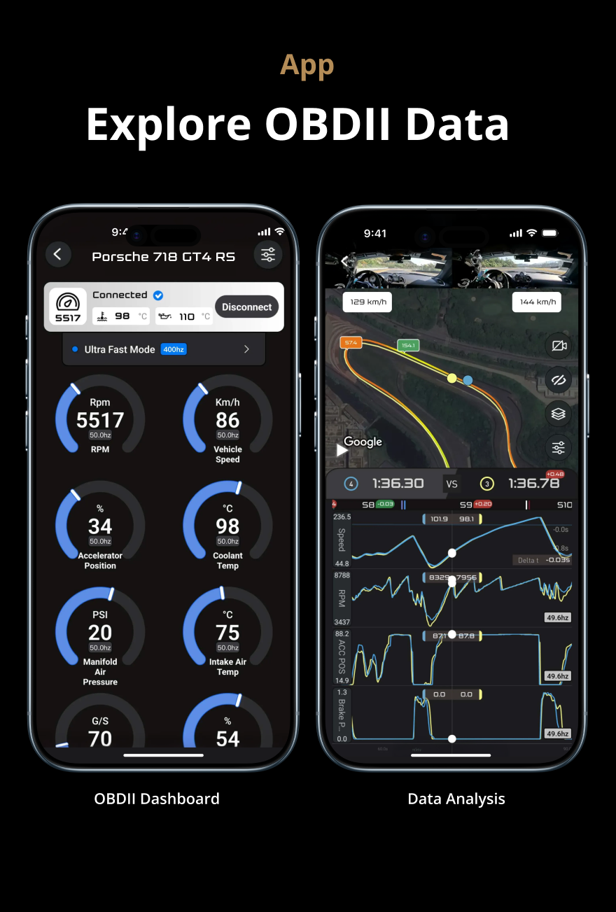 unlocking instant, high-resolution data drivers have been missing. The Dragy OBD II Adapter is designed to work alongside Dragy GPS, unlocking a deeper layer of performance data. By monitoring and logging ECU signals, it enriches Dragy’s GPS data with detailed vehicle metrics and is fully compatible with Dragy Video Overlay — bringing monitoring, data logging, and on-screen overlays together for a complete racing data experience.